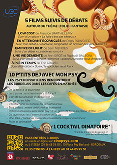 3 jours de festival au coeur de Bordeaux à l'UGC, avec des projections suivis de débats, des rencontres en matinées dans des cafés autour d'un p'tit dej, discussions entre des professionnels de la psychothérapie et le public, une soirée de gala...